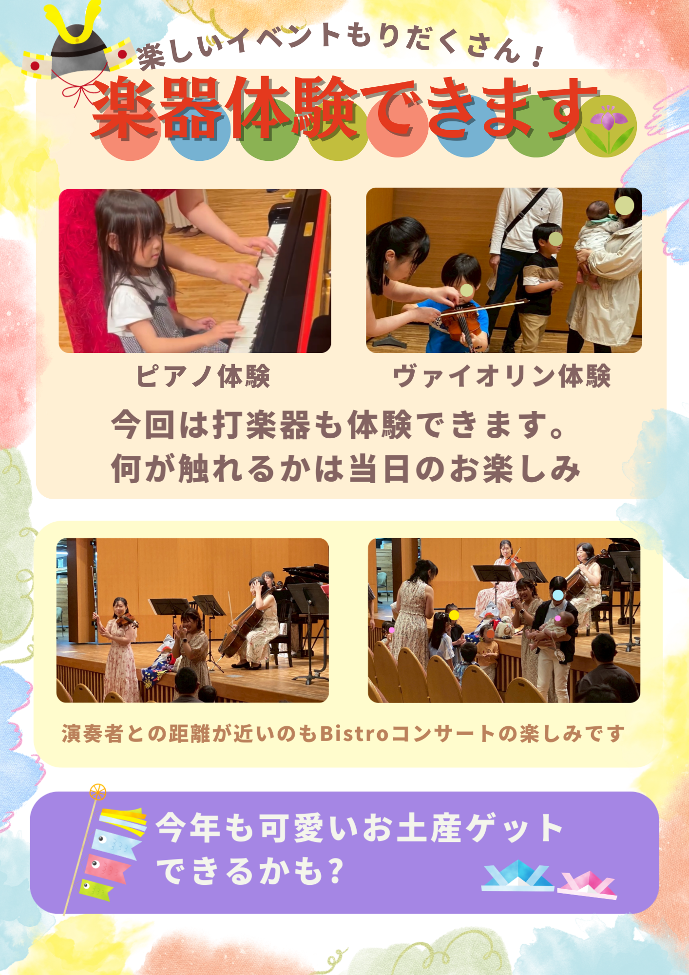 今回はピアノとヴァイオリンのどちらかを触れるコーナーを作っちゃいますので、